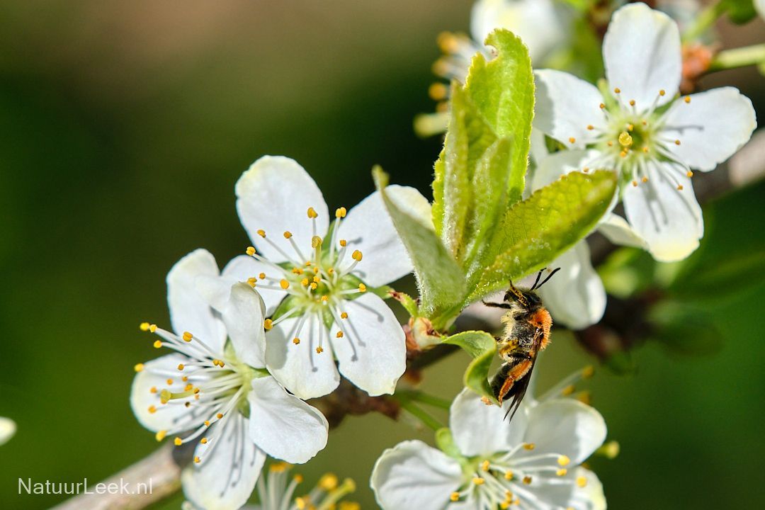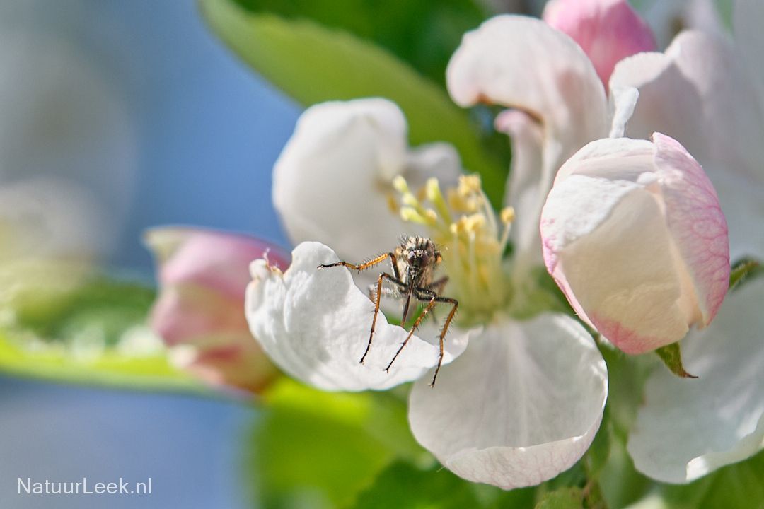 April is al voorbij en het lijkt wel of er weer minder insecten zijn. Er bloeien veel planten in onze tuin en ook de appelbomen staan volop in bloei. Toch zijn er naar verhouding maar weinig insecten te zien. Wie er wel waren: kleine metselbijen die ook gebruik maken van ons insectenhotel, zoals de rosse metselbij op de grote foto en roodgatjes. Verder nog de grote dansvlieg en een kleine rouwvlieg.