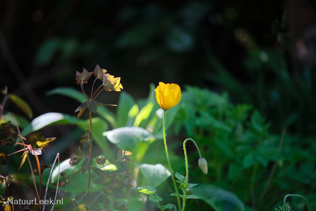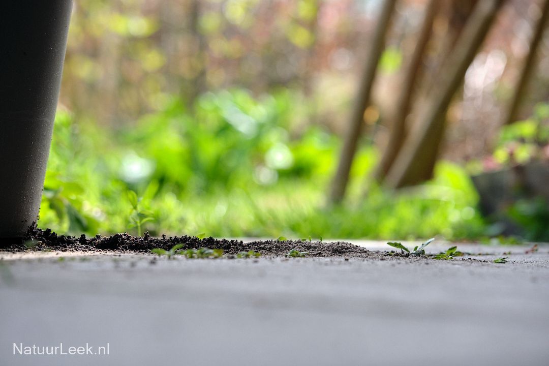 Naast een kleine uitstapje naar de Onlanden (foto van de snor en de zonsondergang), heb ik vooral foto's in onze eigen tuin gemaakt. De schijnpapaver, de mierentunnel op het terras en twee foto's in onze schuur (blad in een web en kleine kruisspinnen voor het raam). De laatste foto is van ontkiemende zaden.