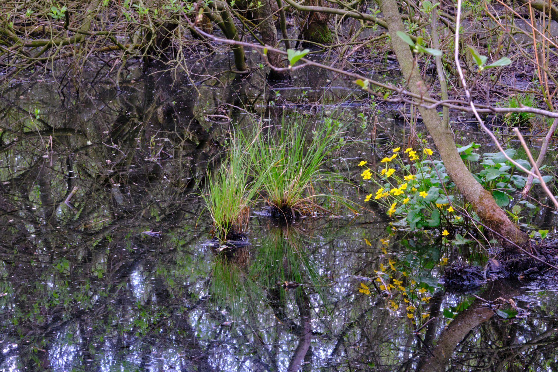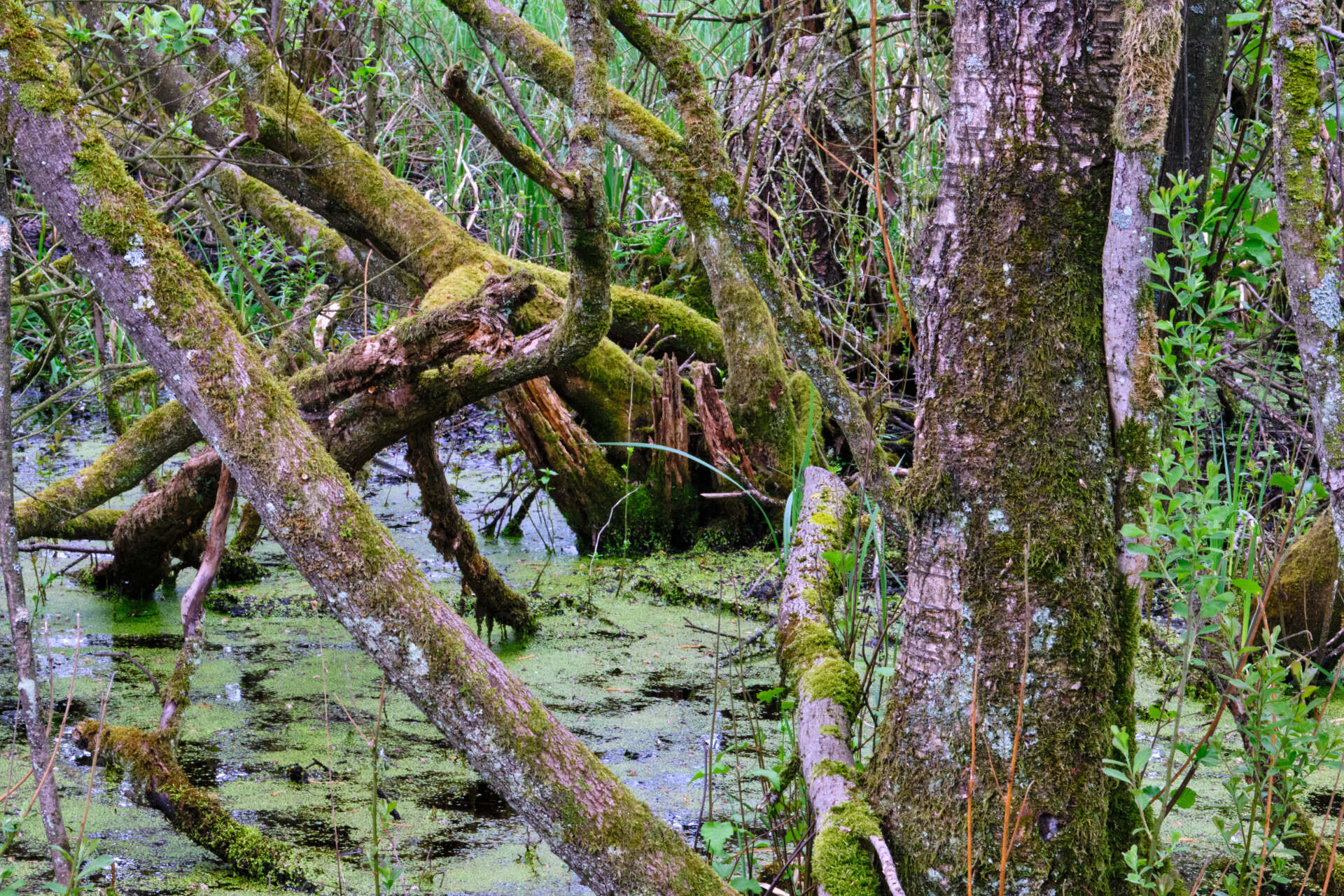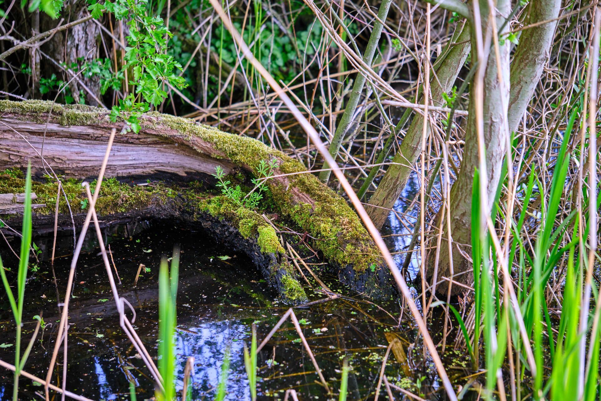 Ik word altijd vrolijk van de chaos in het elzenbroekbos van de Lettelberter Petten. Verschillende tinten groen en overal lijnen. Je moet goed om je heen kijken en dan zie je bijvoorbeeld een spin die een web heeft gemaakt in de top van een grasspriet. Behalve foto's uit het bos ook nog een paar foto's uit eigen tuin van de tulpjes in het grasveld en de bleke borstelkurkzwam die op de voet van de voederpaal groeit.