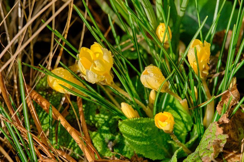 Het voorjaar is begonnen. . De krokussen en de toverhazelaar bloeien en af en toe is er ook nog nachtvorst. Dat laatste levert ook mooie plaatjes op. Foto's gemaakt in het Lauwersmeergebied, de Lettelberter Petten en in eigen tuin.