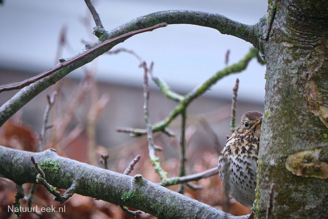 Deze pimpelmees keek lekker eigenwijs in de camera. Een lijster speelde verstoppertje in de appelboom.