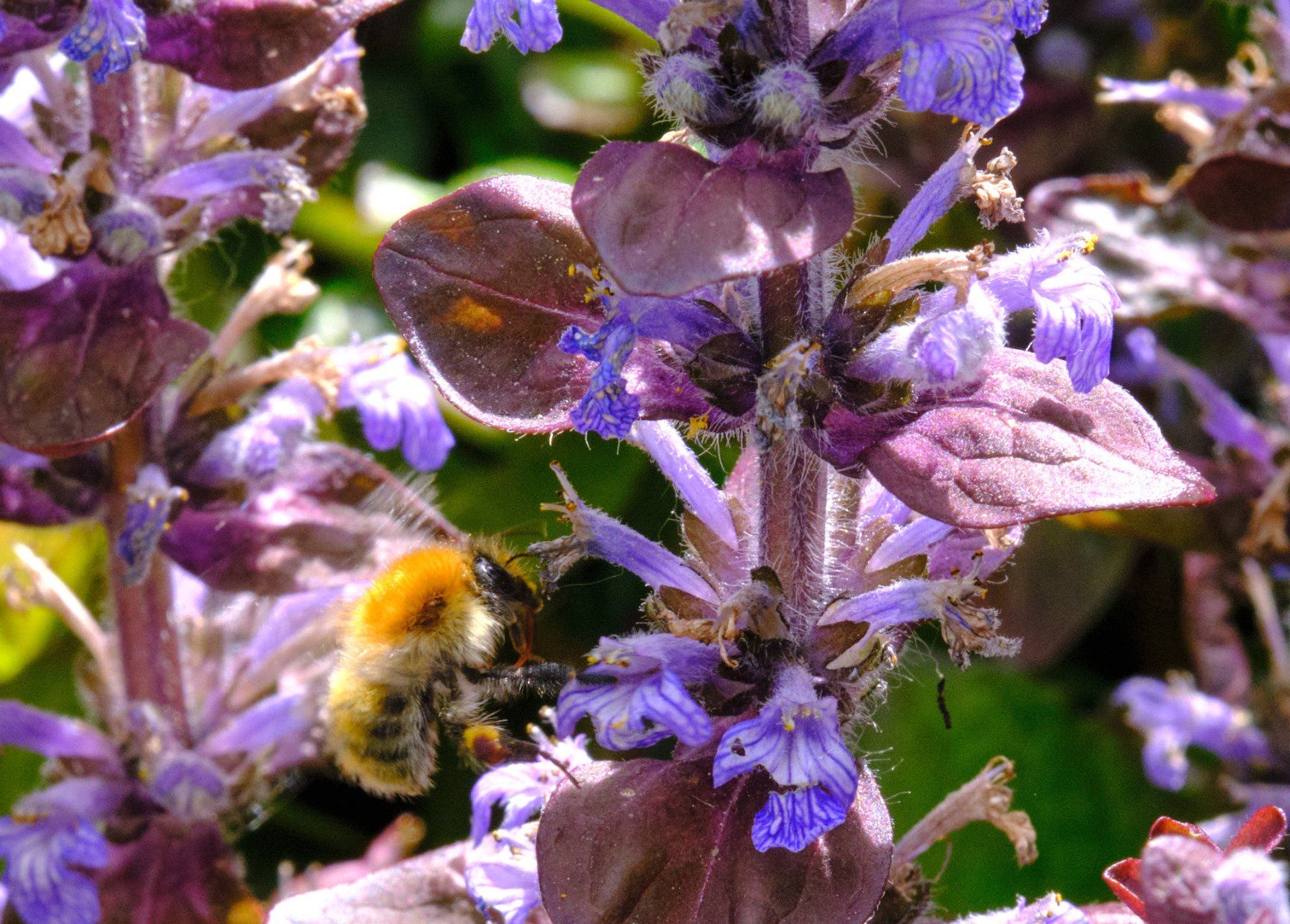 We laten ons grasveld al een paar jaar verwilderen. We maaien nog maar 1 keer per jaar, als alles is uitgebloeid. Wat levert dat op? Nou veel variatie in plantengroei. Er komen allerlei planten op, zoals deze ereprijs. En dat zorgt weer voor meer insecten. Op de ereprijs laatst een ereprijszandbij. Volgens waarneming.nl is deze bij zeldzaam in het Noorden van het land. Ben ik weer blij dat ik deze soort een plekje kan bieden om te fourageren. Wat hebben we verder nog? Veldzuring, een kraamwebspin (op jacht naar een muntvlindertje), akkerhommels, een gewone tweevleugel haft die het wat beter wou zien en tweerijige zegge in het grasveld. In de tuin hebben we nog veel meer bloeiende planten, zoals akeleien die ook weer helpen om insecten aan te trekken. En wat blijkt dan? Metselbijen houden ook van Ikeakasten.