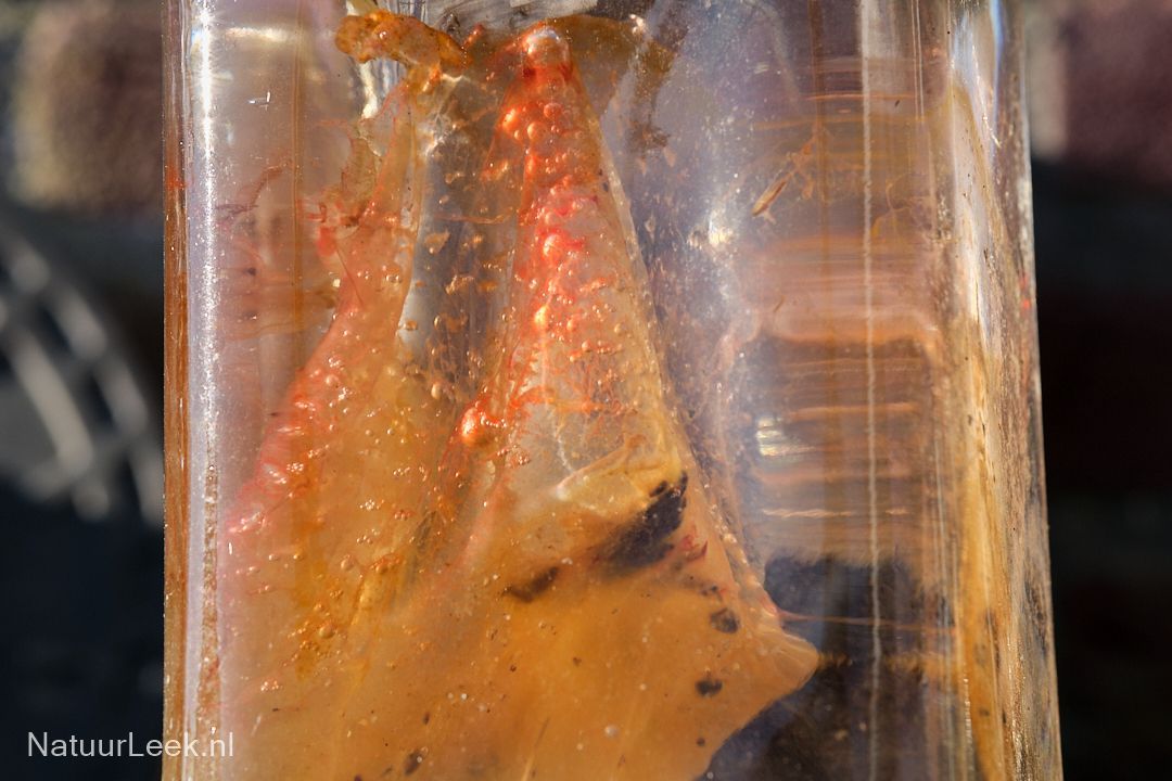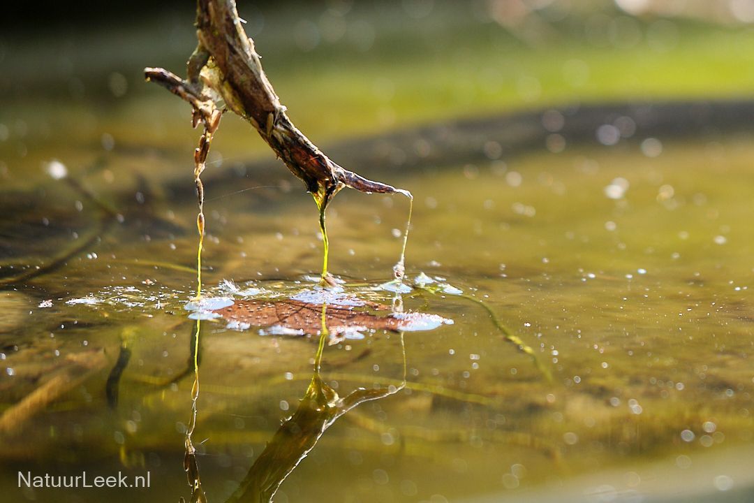 Algen groeien nu het warmer wordt weer volop. In onze vijver bijvoorbeeld als een soort luchtbellen, maar ook in een fles met regenwater. Zie daarvoor de eerste drie foto's.
