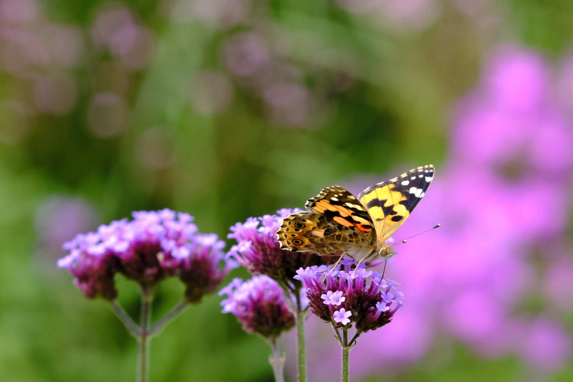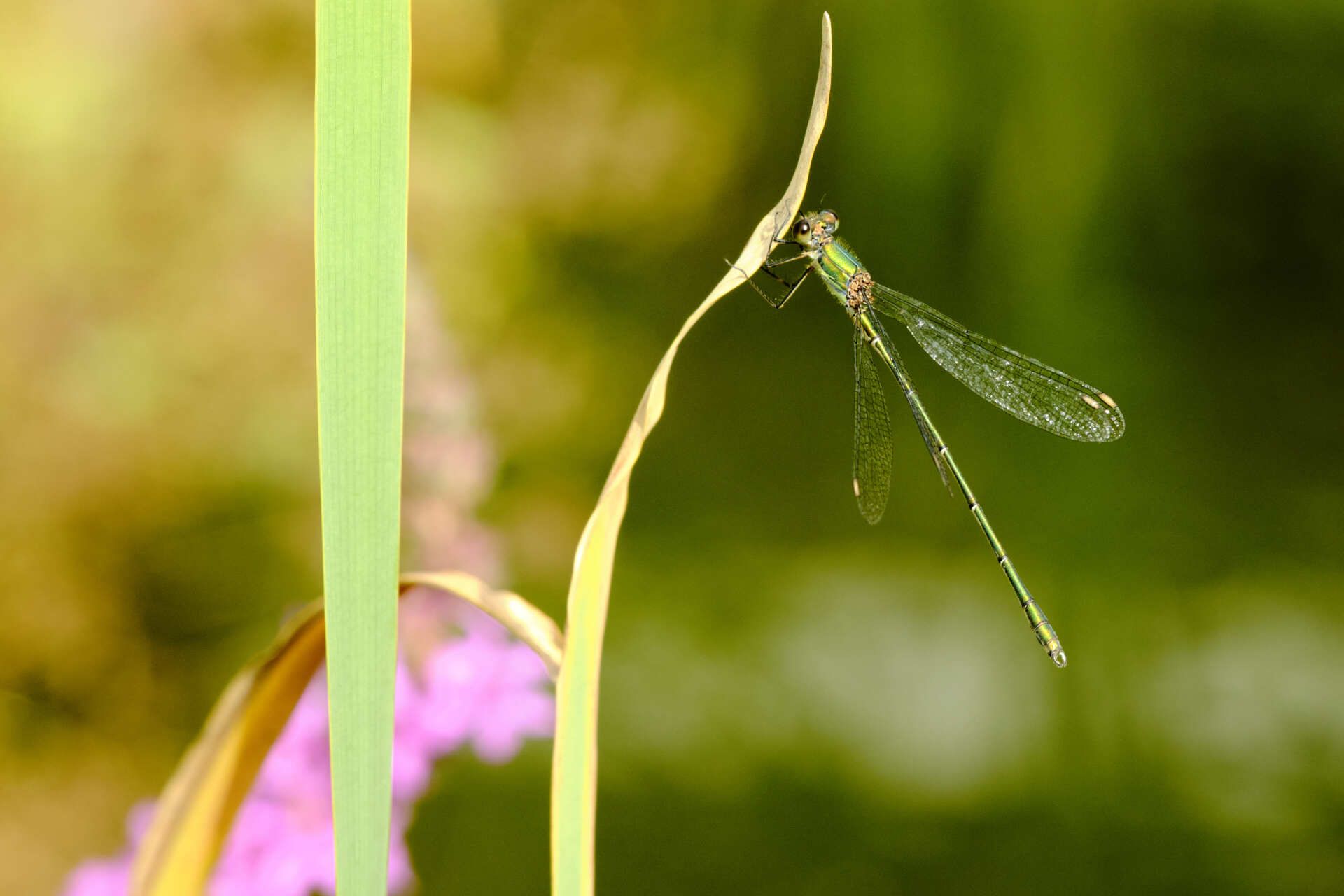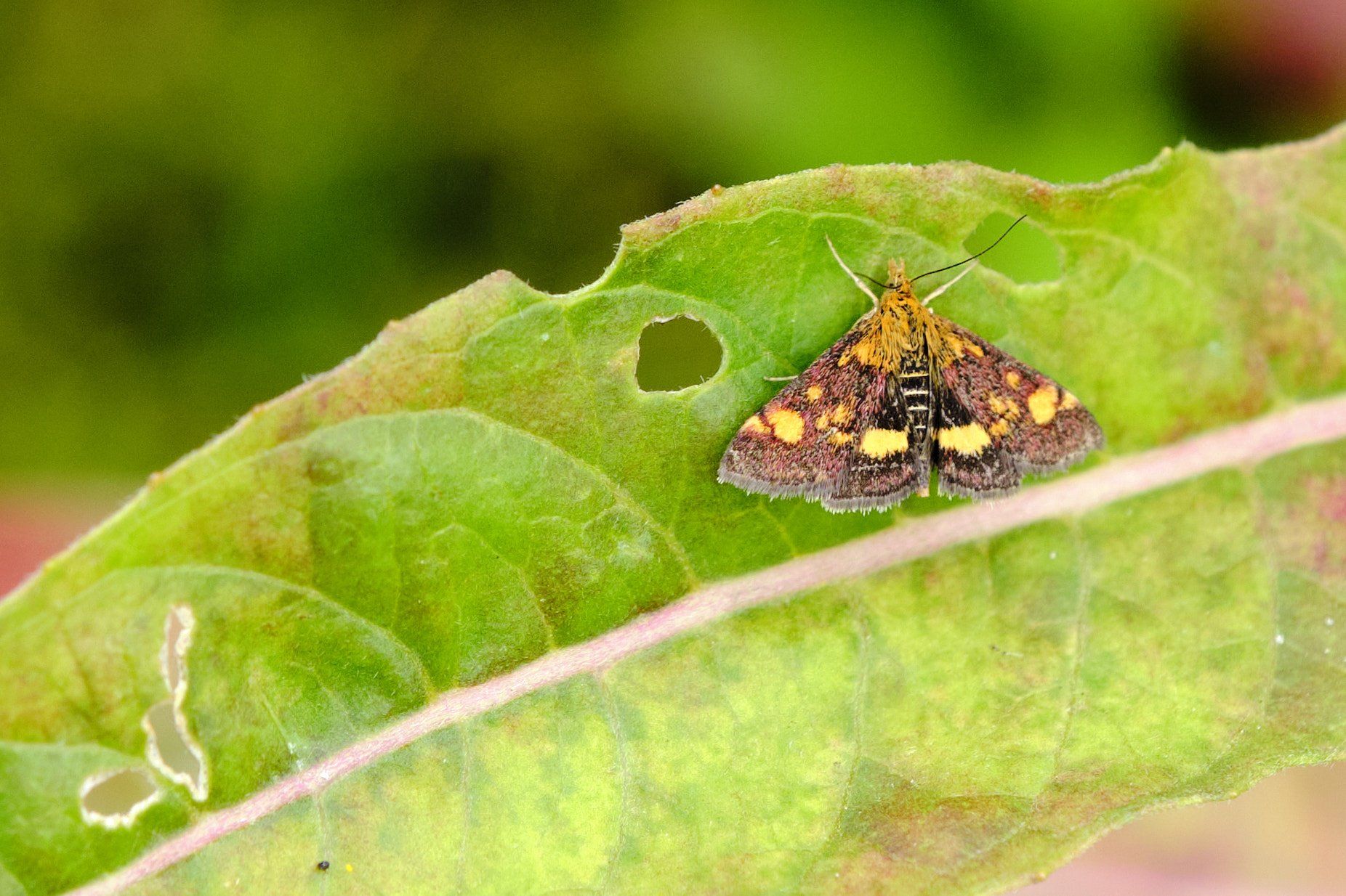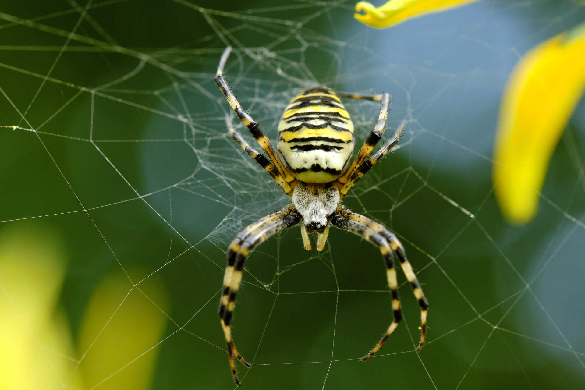 Zomaar wat mooie gasten in de tuin: koninginne page, bloedrode heidelibel, pantserjuffers (man en vrouw), wesp- of tijgerspin, 3 struiksprinkhanen, distelvlinder en een muntvlindertje. De tijgerspin vond ik een dag nadat ik de foto had gemaakt helaas dood onder haar web.
