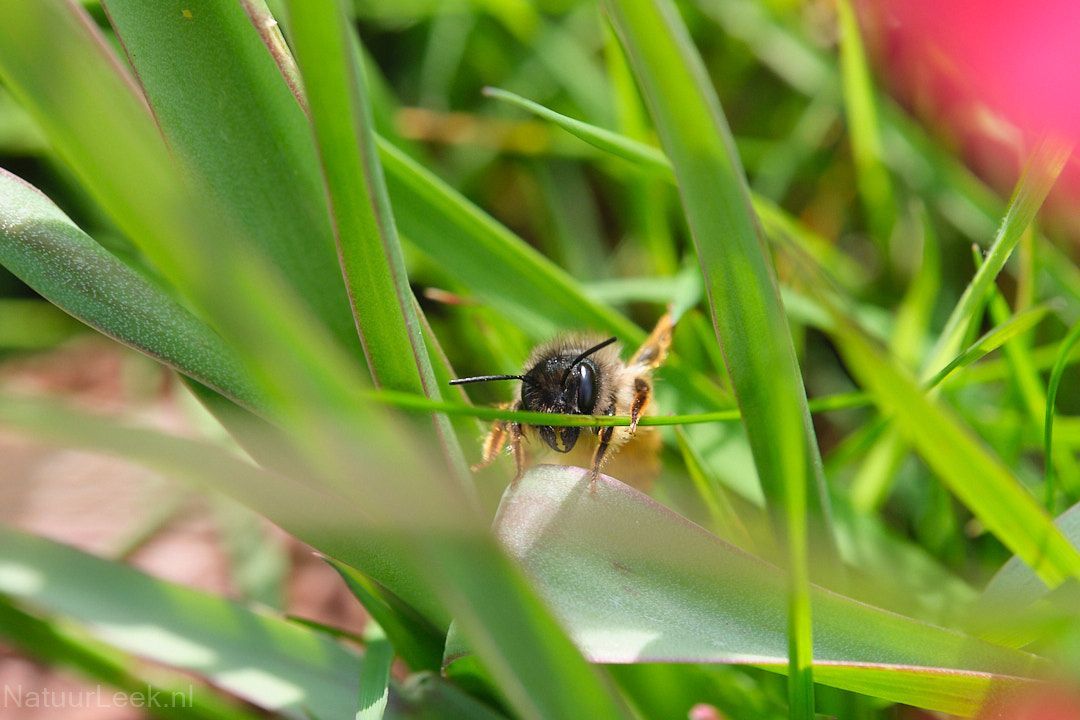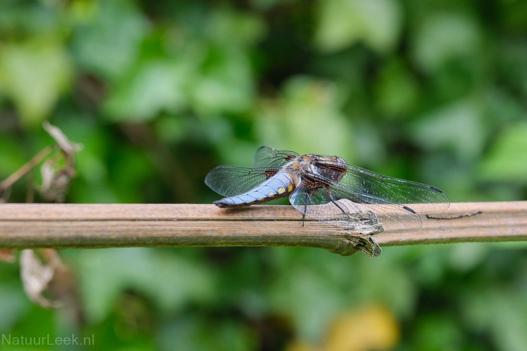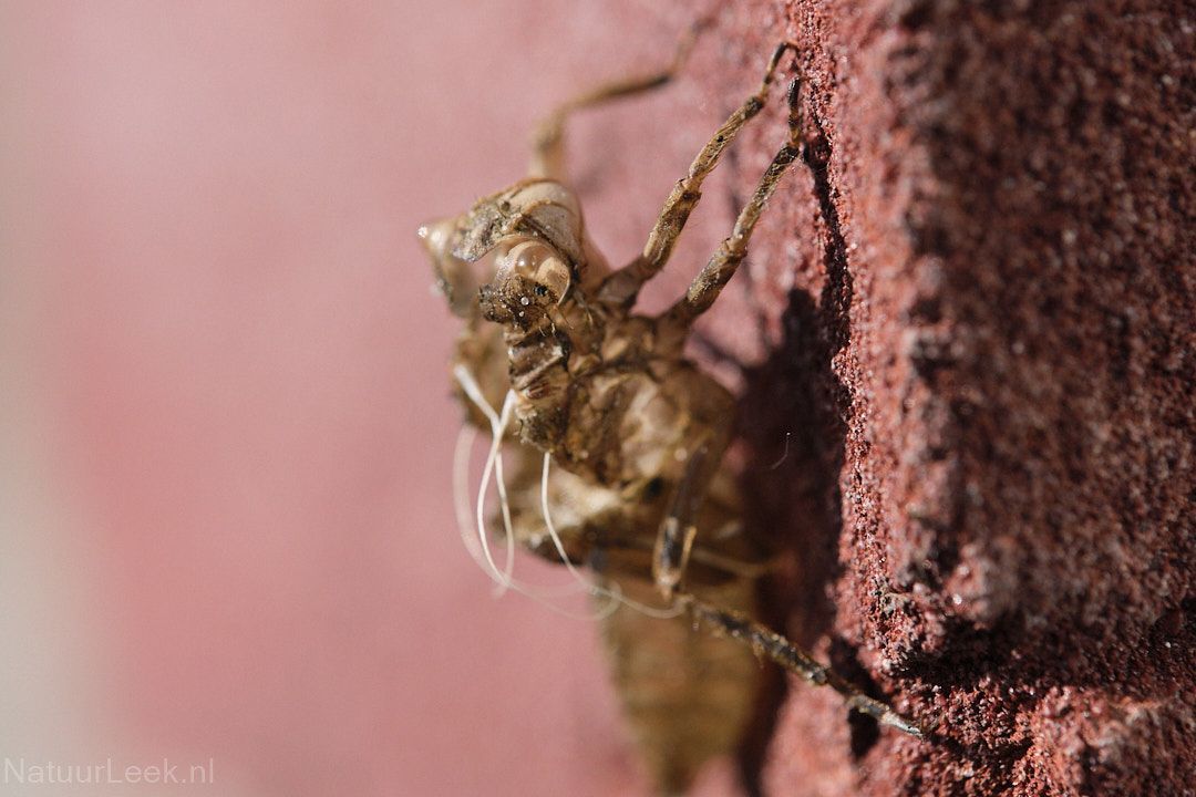 Bij de foto's van deze maand zijn een aantal bijzondere waarnemingen, zoals bijvoorbeeld de rups van de zeldzame helmkruidvlinder hierboven. En wat te denken van de evenwichtsact van een naaktslak aan het eind van een narcisstengel, of een alien op de muur van ons huis. Verder te zien; de rups van de helmkruidvlinder in zijn geheel, een schijnpapavertje, een rosse metselbij, huidje van een oeverlibel, een verregende aardhommel, groot dooiermos, een platbuik en een plooirokje.
