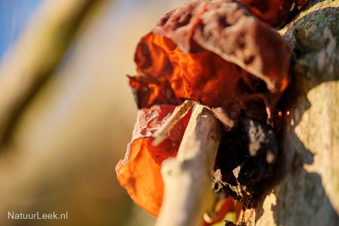 Verder nog wat foto's uit de Lettelberter Petten. Achtereenvolgens de houtknotszwam, een mycena, judasoor in de zon, gewoon een blaadje en wat mossen.