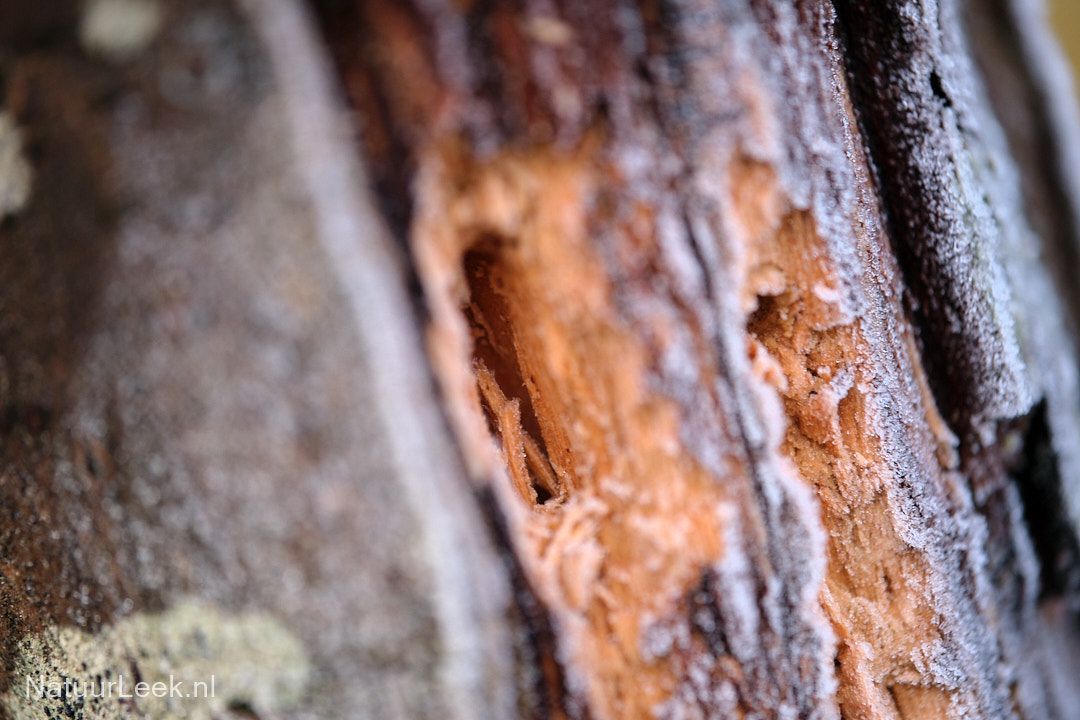 Ik ben niet direct een vogelaar, maar deze groter bonte specht is wel erg leuk. Hij komt bijna dag wel even in onze tuin op zoek naar lekkere hapjes. Hij laat dan ook wel sporen na, zoals op de eerste foto hieronder te zien is.