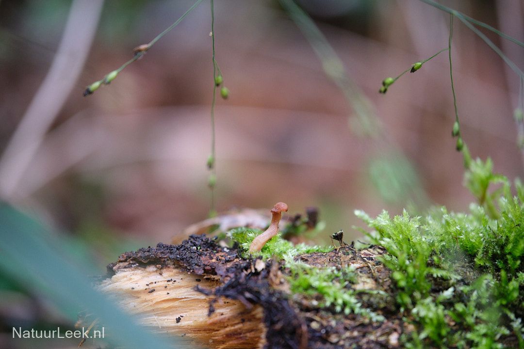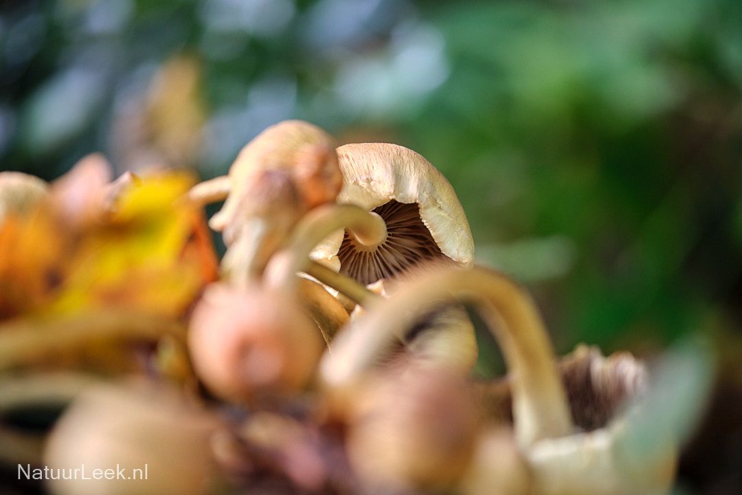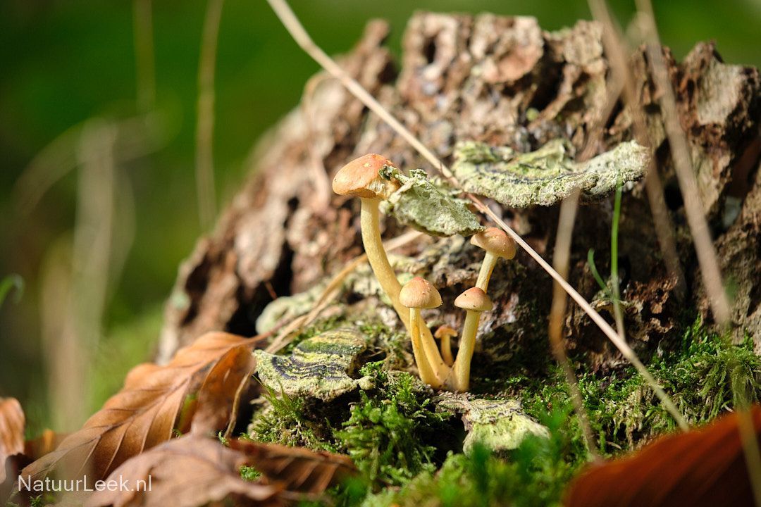 Op de foto's achtereenvolgens: een bundel fraaisteelmycena's, het gewoon donsvoetje, de gewone zwavelkop, 2 keer een honingzwam, de gewone glimmerinktzwam, de grote bloedsteelmycena, kopjesbekermos, een onbekende mycena en een gewone fopzwam waarvan het lijkt of hij omver wordt geblazen.