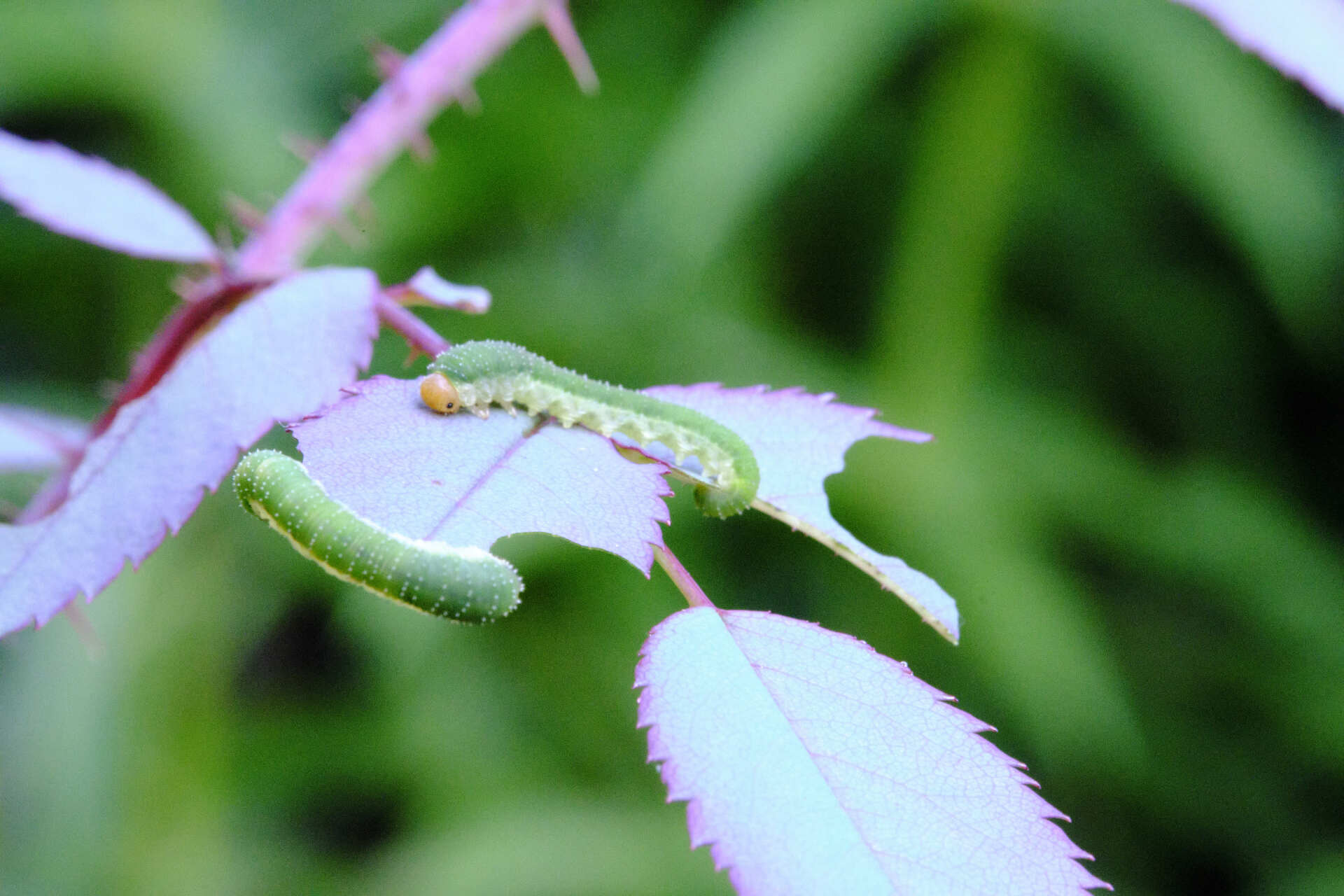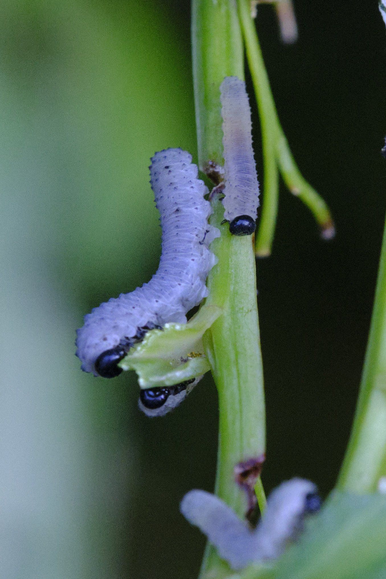 Dit lijken wel rupsen, maar dat zijn het volgens de officiële naamgeving niet. Het zijn nl. larven van bladwespen. In dit geval van de Allantus viennensis, Arge pagana (zowel de grote als de middelste onder worden op waarneming.nl beide als Arge pagana geïdentificeerd) en de Salomonszegelbladwesp. Die laatste eten de salomonszegels bij ons in de tuin ieder jaar weer helemaal kaal.