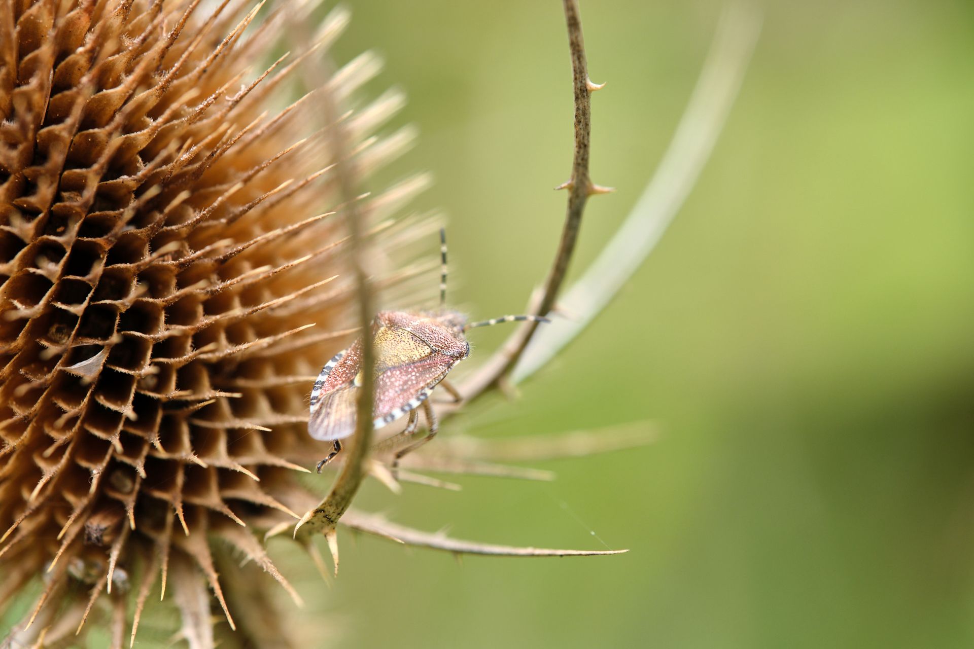 Deze maand foto's gemaakt in onze eigen tuin en foto's die ik in De Braakman in Zeeuws-Vlaanderen heb gemaakt. OP de grote foto de bloem van het zegekruid of, zoals wij hem noemen, de blauwedozenplant. De andere foto's zijn achtereenvolgens van het web van een strekspin (2x) en een teunisbloem in de ochtendzon bij ons in de tuin, zonsondergang bij de Westerschelde ter hoogte van Nummer Een, een waaiertje, de bloem van een kardinaalsmuts en een grauwe schildwants op een kaardebol in natuurgebied De Braakman en als laatste een houtpantserjuffer op de knotwilg in onze tuin.