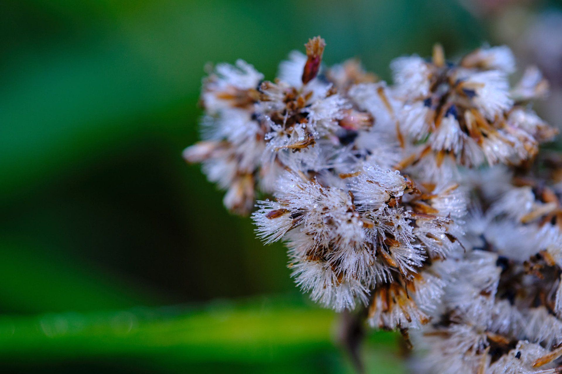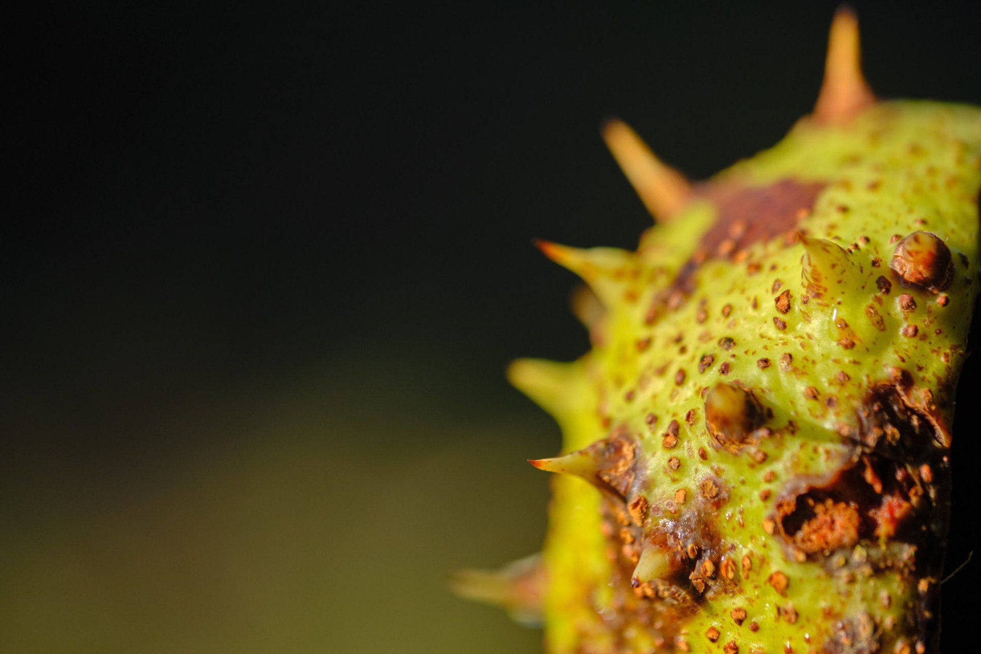 Er zijn al weer veel paddestoelen te zien in de Petten; diverse mycena's, trilzwammen, houtzwammen en korstzwammen. Het zaad van het leverkruid zit vol waterdruppels en de kastanje lijkt zo net een alien :-)
